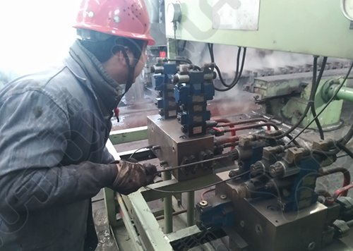 制作鎖緊裝置,以減少軋輥運(yùn)轉(zhuǎn)過程中對壓板造成的沖擊負(fù)荷
