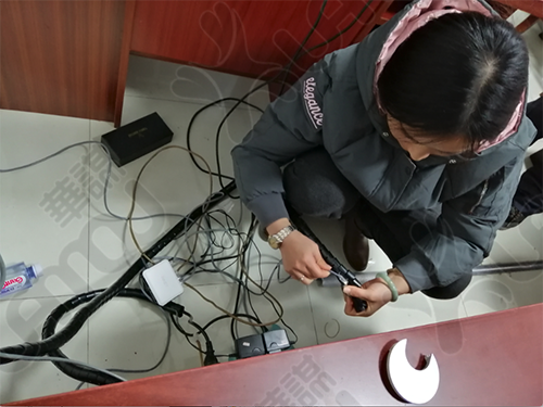 電源線梳理,強、弱電分開進行綁扎,相應的插頭貼上相對應的標識進行區(qū)分,提高效率,杜絕安全隱患。