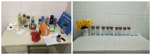 改善前,水杯亂放