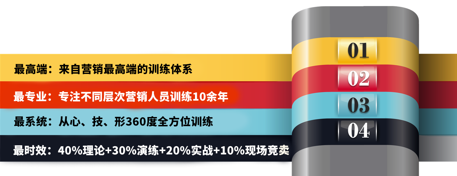 | 引爆?靈動能 | 2天1晚 | 19800/場 | 1、3個?系統(tǒng)性、浸泡式學(xué)習(xí); 2、3個?運(yùn)?輔導(dǎo),幫助學(xué)員全?銷售能?提升; 3、2套價(jià)值1000元的銷售、談判光盤供學(xué)員復(fù)習(xí)鞏固; 4、協(xié)助參訓(xùn)學(xué)員編寫價(jià)值 5000 元的《話術(shù)?冊》并指導(dǎo)使?; 5、不定期落地分享會與會員企業(yè)互訪等主題活動等. |