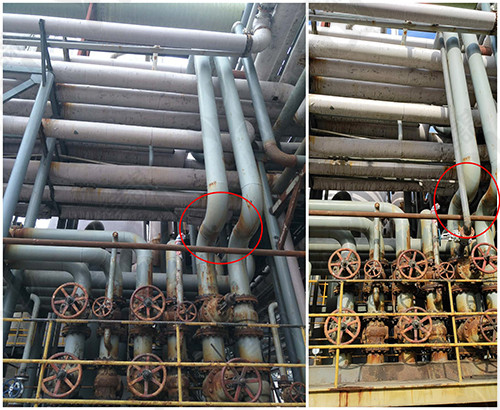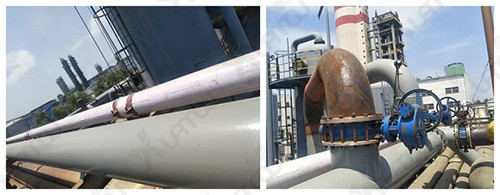 在污氮?dú)夥謿獍隹诠苌嫌脧U舊管道連接新老系統(tǒng)洗塔管,通過此管道其余10臺(tái)塔也能用污氮?dú)庀此?/p>
