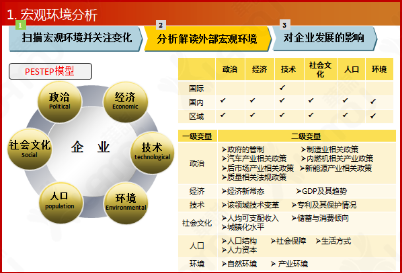 1: 制定業(yè)務(wù)規(guī)劃通過(guò)行業(yè)分析、競(jìng)爭(zhēng)分析、客戶分析以及SWOT分析,為業(yè)務(wù)規(guī)劃環(huán)節(jié)制定核心策略和關(guān)鍵任務(wù)、測(cè)算業(yè)務(wù)目標(biāo)、分配資源提供依據(jù)